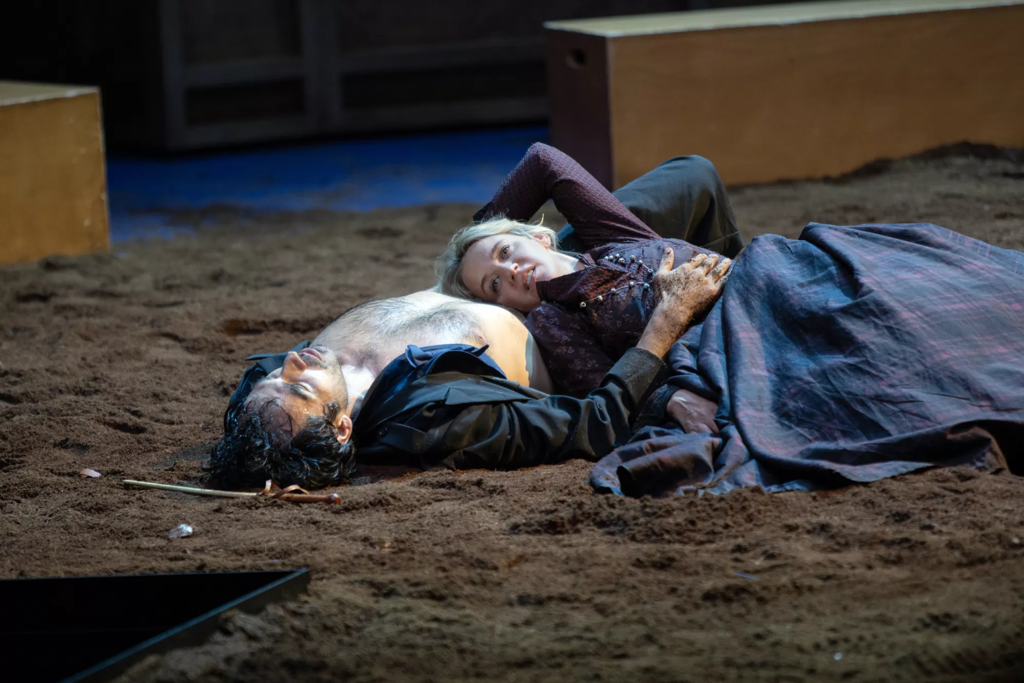 C’est typiquement un passage où Flaubert s’arrache les cheveux, comme il le raconte dans ses lettres : il veut tout dire à la fois, l’ennui d’une cérémonie provinciale et, en même temps, l’instant où Rodolphe commence à séduire Emma. Nous avons cherché une équivalence scénique. Nous avons imaginé Rodolphe en lanceur de couteaux : pendant que le discours officiel se déroule, il «vise» Emma, littéralement, et le spectateur comprend que la conquête a commencé.
