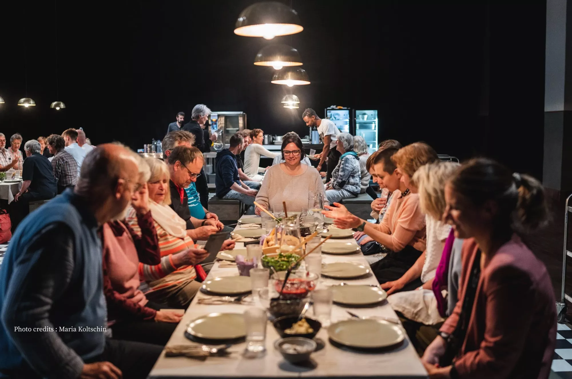 À travers gestes de service, dispositifs sonores et mets symboliques, les « kitchen workers » deviennent les hôtes du public et partagent leurs récits de vie et de migration. Peu à peu, le repas se transforme en rituel collectif, à la fois convivial, poétique et politique.