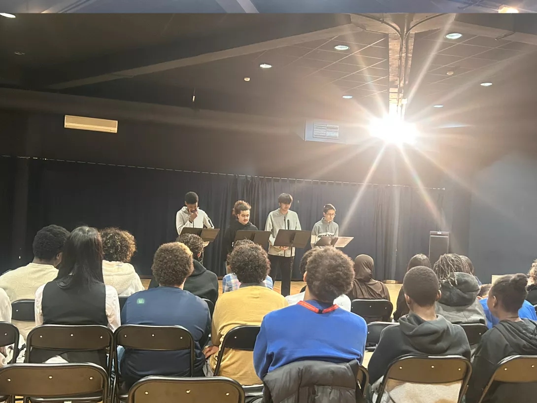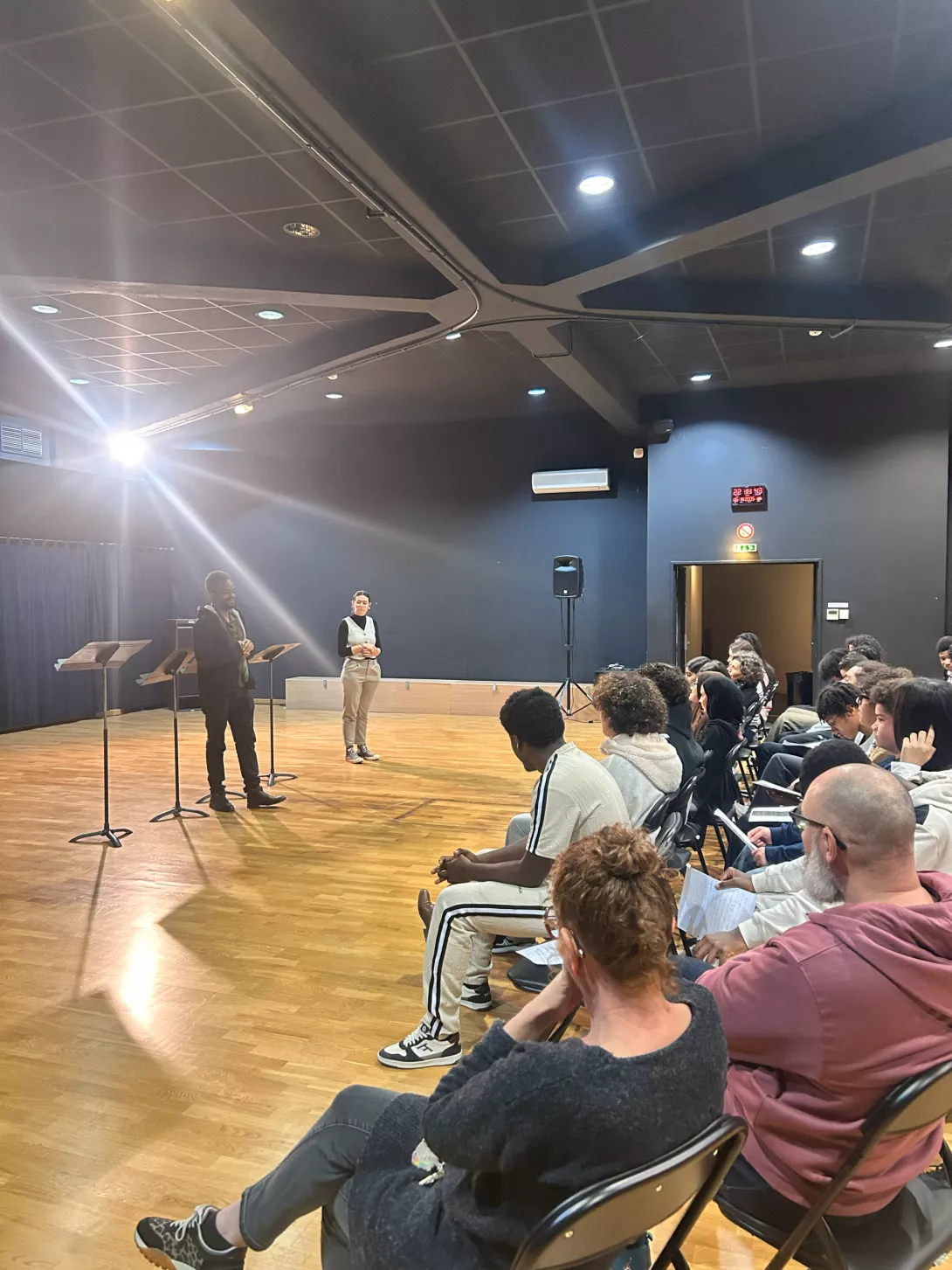 Ces textes ont ensuite été mis en voix et présentés aux élèves UPE2A du lycée Truffaut de Bondoufle, le jeudi 22 janvier. Cette rencontre a permis de croiser les regards, de partager les créations dans un cadre bienveillant et de vivre concrètement l’esprit de l’Ubuntu.