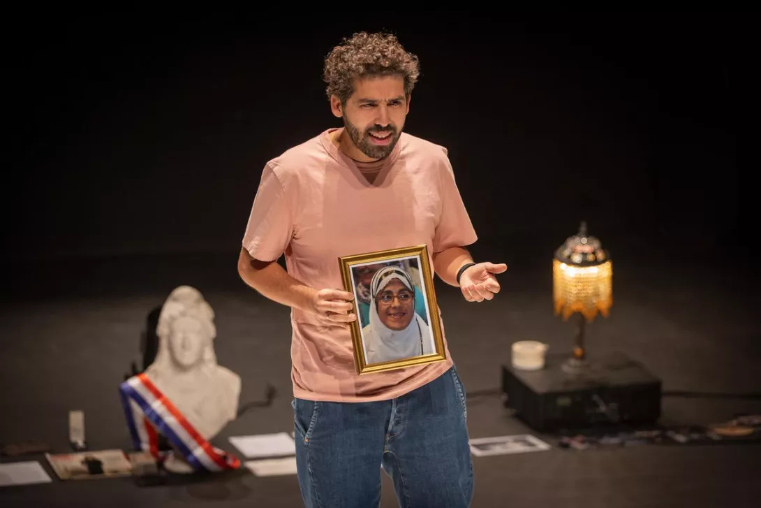 En 2019, lors d’une séance du conseil régional de Bourgogne-Franche-Comté, un élu prend violemment à partie une femme voilée qui accompagne des élèves lors d’une sortie destinée à les sensibiliser aux valeurs de la République. Son fils de dix ans est à ses côtés. Cet épisode fait alors ressurgir pour Issam Rachyq-Ahrad des souvenirs de son enfance, entre les humiliations subies et la honte ressentie envers sa mère. Dans ce récit intime et tendre, le comédien nous invite chez elle et dresse avec une bonne dose d’humour, et loin des clichés attendus, le portrait d’une femme solaire, drôle, et plus libre qu’on ne pourrait le croire. Un portrait singulier empli d’humanité qui déplace le regard sur celle qui porte le foulard. Et qui offre ainsi à cette mère, comme à nous tous, une place.