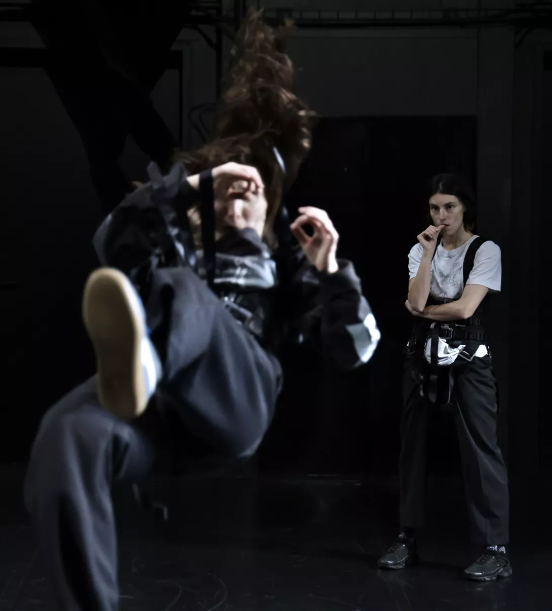 Cette nouvelle création de la jeune chorégraphe Solène Wachter, qu’on a pu découvrir comme interprète pour Boris Charmatz ou Maud le Pladec, est un projet né de sa fascination pour la cascade, une pratique qu’elle considère comme une cousine éloignée de la danse. Machine à Spectacle souhaite décortiquer cet art mystérieux, son rapport à la virtuosité et à la prise de risque. Ce « faux » solo, auquel nous assistons, est en réalité un jeu d’illusion qui réunit sur scène six performeuses. Il nous transporte dans l’univers périlleux de cette femme-orchestre qui maîtrise aussi bien le chant lyrique, les percussions que l’acrobatie. Une vertigineuse mise en abyme pour découvrir l’envers du décor et la figure méconnue de la cascadeuse, ce double anonyme au service de la fiction. Une pièce chorégraphique à couper le souffle !